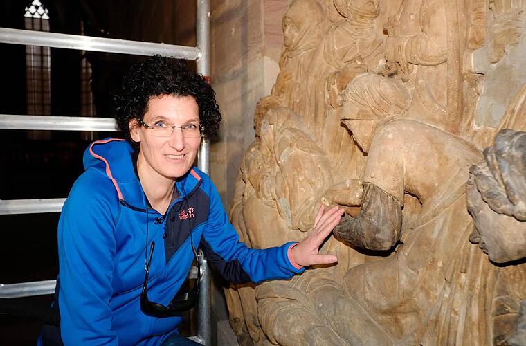 Die sieben Kreuzwegstationen von Adam Kraft strahlen. Mit Lasertechnik hat Katrin Müller das Kunstwerk vom Schmutz der letzten 500 Jahre befreit.