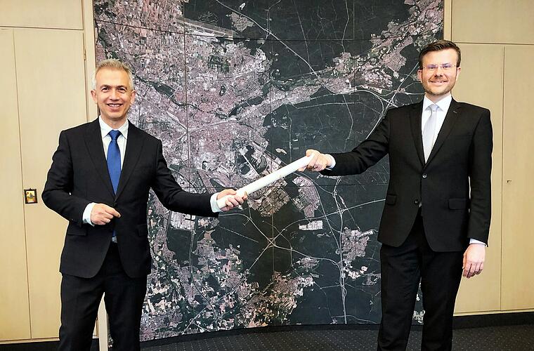 Nürnbergs Oberbürgermeister Marcus König hat sich am Freitag, 19. März 2021, mit seinem Frankfurter Kollegen Peter Feldmann zu einem Meinungsaustausch getroffen. Dabei ging es um Perspektiven für die Innenstädte.