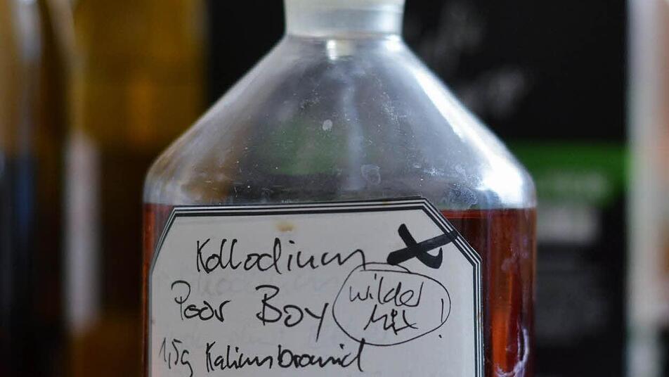 "Das ist Kollodium. Das ist eine Mischung aus Schießbaumwolle, Ether und Alkohol." Das Zeug kennt man aus der Medizin. Kunz will aus dem "Sprühverband" gleich ein Foto machen. Die alchemistische Technik hat er aus dem 19. Jahrhundert ausgegraben. Nicht um der fotografischen Historie zu huldigen, sondern um expressis verbis moderne Fotokunst damit zu machen. Die ganze Sauerei im Labor nimmt er auf sich, weil "die Kollodium-Fotografie qualitativ viel besser ist" als alles was die moderne Pixelwelt leisten könne. Kunz arbeitet an nichts weniger als an einer Renaissance der Fotokunst.