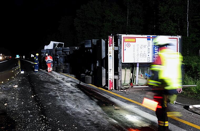 Der Sattelzug prallte mit Wucht gegen die linke Betonleitwand, stellte sich dann auf und kippte schließlich nach rechts um. Der Fahrer wurde mittelschwer bis schwer verletzt und musste in ein naheliegendes Krankenhaus eingeliefert werden.