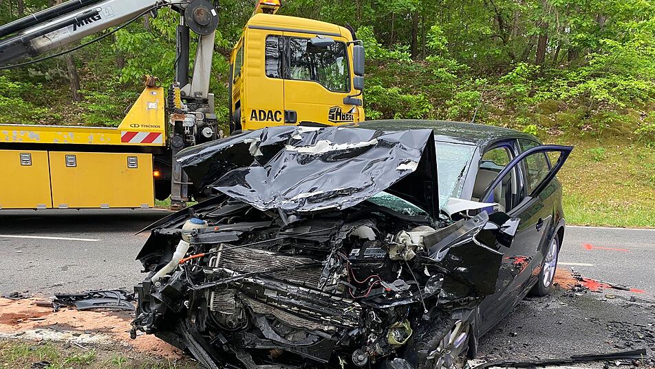 Im Nürnberger Land ist eine Autofahrerin auf regennasser Fahrbahn auf die Gegenspur geraten. Bei einem schweren Zusammenprall wurden drei Menschen schwer verletzt.