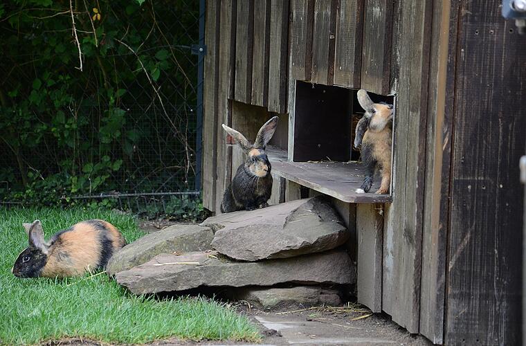 Die Japaner-Kaninchen sind in das Gehege eingezogen, in dem bislang die Riesenkaninchen zu sehen waren. Das Gehege wurde in der Zwischenzeit vom Team der Landschaftsgestaltung des Tiergartens und den zuständigen Tierpflegerinnen und Tierpflegern umgestaltet und verschönert. Sie haben das Außengehege neu bepflanzt, Baumstämme eingebracht sowie eine Sandfläche und kleine Steinhöhlen angelegt, die den Kaninchen besseren Unterschlupf bieten. Auch die Inneneinrichtung wurde erneuert und mit mehr Versteckmöglichkeiten ausgestattet.