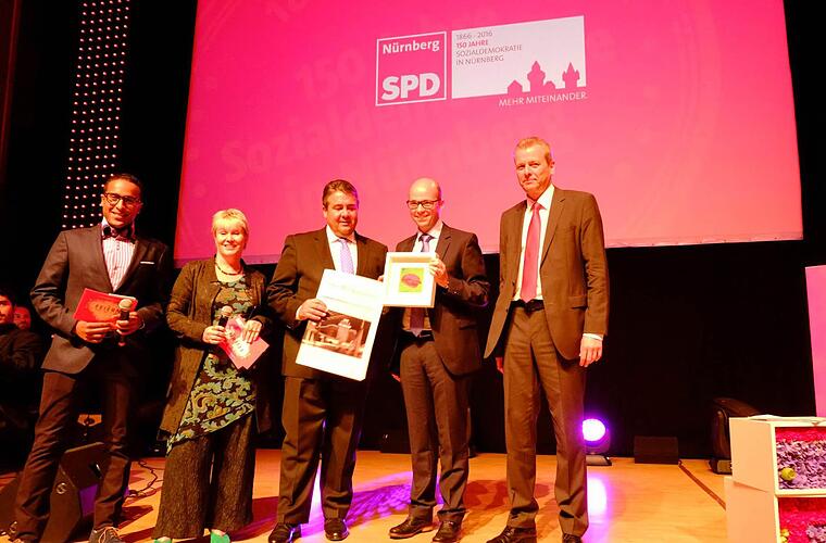 Sigmar Gabriel hat in seiner Festrede am Montagabend der Nürnberger SPD zum 150. Geburtstag gratuliert.