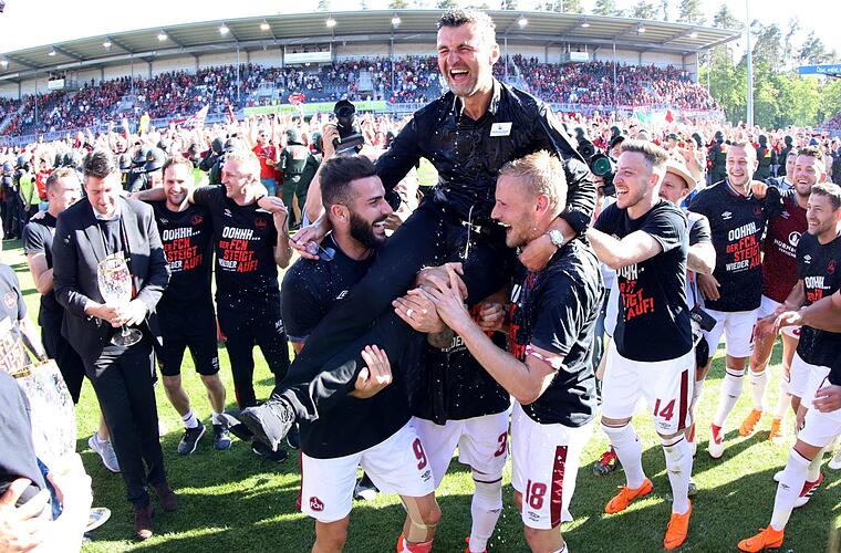 Vor den Jubelszenen hatte der FCN allerdings lange hart arbeiten müssen. Nach der Führung war Sandhausen nahe am Ausgleich, doch die Gastgeber konnten den sicheren Nürnberger Keeper Bredlow nicht überwinden. Schon zu Saisonbeginn sei er vom Aufstieg überzeugt gewesen, räumte Köllner dann in der Nürnberger Feiernacht ein.