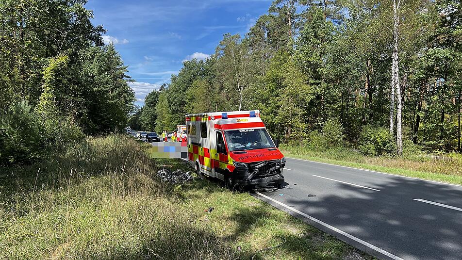 Dies übersah offenbar ein 58-jähriger Mann auf einem Motorrad hinter dem Auto und prallt auf das Heck des Wagens. Danach wurde das Motorrad in den Gegenverkehr und damit gegen den Rettungswagen geschleudert. Der 58-Jährige wurde so schwer verletzt, dass er noch an der Unfallstelle starb.