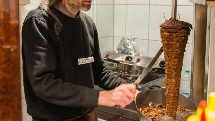 Der Andrang ist mal wieder groß an diesem Samstagnachmittag. Hinterm Tresen stehen Ayhan Akbal und sein Sohn. Zusammen mit Jenny Schmidt hat Akbal Anfang des Jahres den kleinen Imbiss eröffnet. Seitdem brummt der Laden. Schlange stehen ist hier normal. Dass der Vegöner so einschlägt, haben die Betreiber nicht vorhergesehen. "Mit dem Ansturm haben wir nie gerechnet", sagt Akbal, der sorgfältig einen Vegöner belegt.