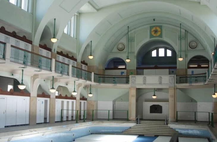 Aktuell wird der Jugendstilbau aus dem Jahr 1914 mit seinen drei Schwimmhallen und 66 Wannenbädern lediglich für Foto-Shootings genutzt.