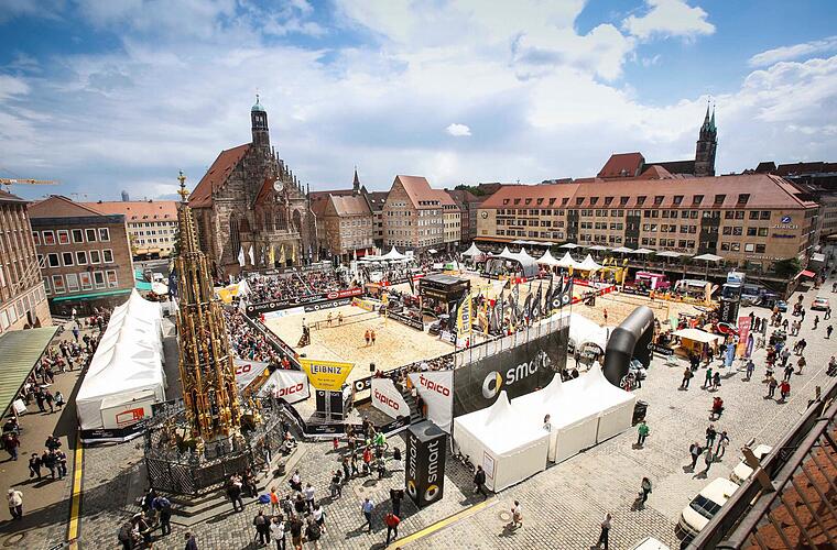 Die Beachvolleyballer sollten auf einem anderen Platz in der Stadt ihre Netze spannen. Die Botschaft an die Kritiker war damit klar und lautete: Kein Grund zur Panik. Im nächsten August wird auf dem Hauptmarkt nicht mehr gepritscht und gebaggert. Dann folgte die Kehrtwende.
