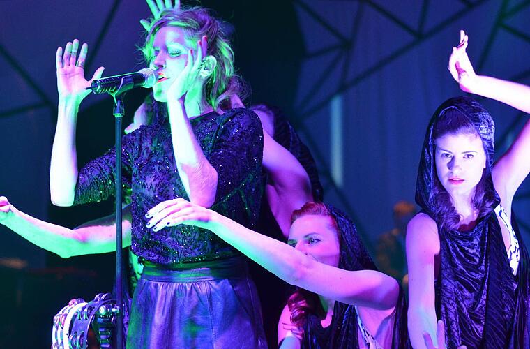 Die Stühle sind aus dem Zuschauerraum verschwunden. Das Publikum sitzt wie im Amphitheater auf Stufen eng einander, als Cyrena Dunbar im engen Lederrock und glitzernder Bluse von vier Tänzerinnen begleitet die t-förmige Bühne betritt. Die vier versierten Musiker von Tommy Yamaha (Bass) bis David Lodhi (Gitarre) haben sich vor der Kulisse mit Videoleinwand postiert, die von Dreiecken und Rautenmustern dominiert wird. Die Gäste pfeifen schnell auf die nicht-existierende Sitzordnung, und suchen tanzend die Nähe zur Bühne. Derweil schlängeln sich die Tänzerinnen wie indische Tempel-Schönheiten um die Sängerin, die in jeder Bewegung ihre künstlerische Herkunft aus dem klassischen Ballett nicht verbergen kann. Das ist überhaupt der bezeichnende Unterschied. Hier steht keine Madonna auf der Bühne. Kein klassischer Popstar, der mit tanzendem Blendwerk den Songs auf die Sprünge helfen will. Freilich gibt es auch Feuerspiele und sogar Seilakrobatik zur Lichtshow. Selbst Luftballons fliegen zum Finale von der Decke. Aber hier geht es nicht darum, mehr oder weniger gute Schlager mit Gigantismus "on stage" aufzumöbeln. Hier stehen einfach fünf Menschen zusammen, die ihre Kunst als Werk gemeinsam mit anderen Künstlern inszenieren wollen.