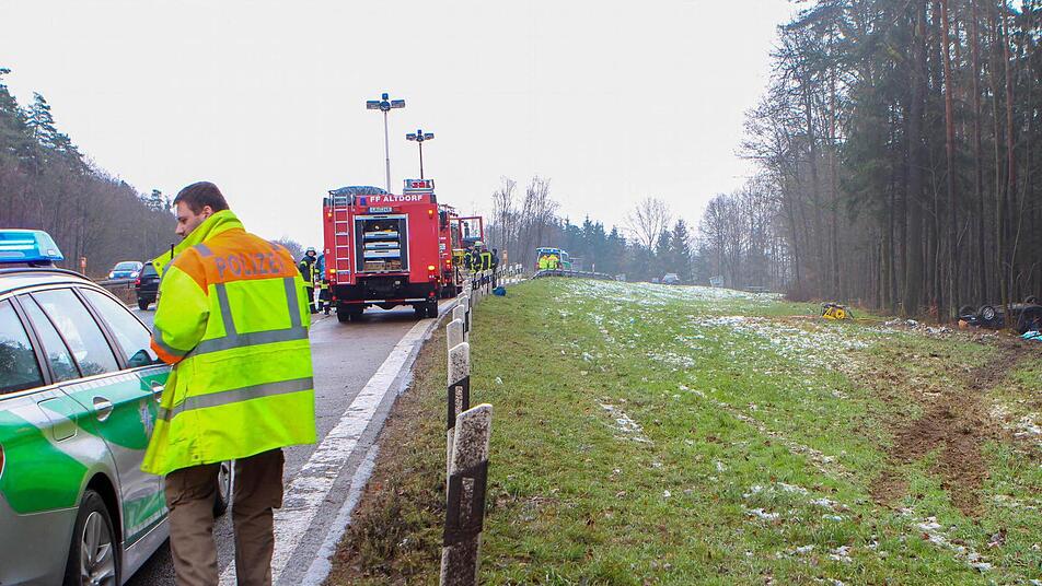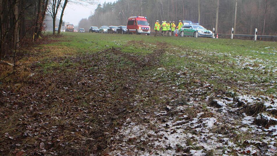 Der 74-jährige Fahrer eines 3er BMW älteren Baujahrs war aus noch ungeklärter Ursache nach rechts von der Autobahn abgekommen. Das Fahrzeug hatte sich überschlagen und war gegen einen Baum geprallt.