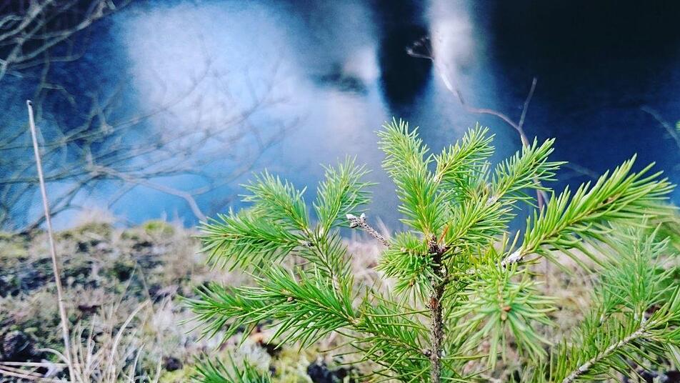 Zwischen Burgen und Bergen liegt in der Rhön der Basaltsee am Steinernen Haus in Oberelsbach.
