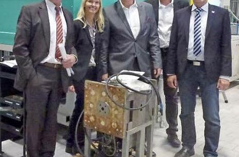 Das Familienunternehmen Kunststofftechnik Erhard, das inzwischen in dritter Generation am Standort Bad Könighofen produziert, ist ein Spezialist im Bereich des Kunststoffspritzgusses. Vornehmlich Autoteile aus Kunststoff, aber auch sonstige Kunststoffprodukte liefert das Unternehmen an weltweit operierende Kunden. Dabei hatte das Unternehmen bei seiner Gründung einen ganz anderen Unternehmenszweck. Ursprünglich nahm das Unternehmen die Form einer Automobilwerkstatt an und orientierte sich erst im Laufe der Jahre am sich verändernden Markt. So entstanden dauerhafte Handelsbeziehungen und neue Produktionsketten in industriellen Bereichen, die heute insgesamt rund 190 Mitarbeiter beschäftigen. Gastgeberin und Geschäftsführerin Karin Erhard skizzierte die Firmengeschichte und zeigte die umfangreiche Produktpalette auf. Auf dem Foto (von links) Landrat Thomas Habermann, Karin Erhard, Landtagsabgeordneter Steffen Vogel, Dr. Jörg Geier und Bürgermeister Thomas Helbling. Foto: privat