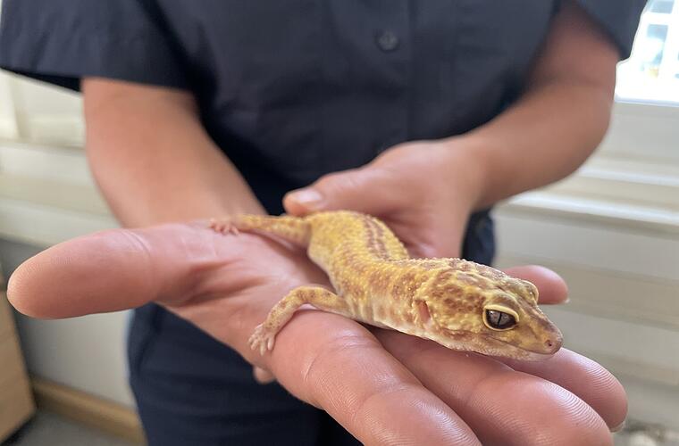 Ungewöhnlicher Gast auf der Polizeiwache: Gecko "Harald" unterstützt seit Sonntag die Polizeiinspektion Bad Neustadt/Saale.