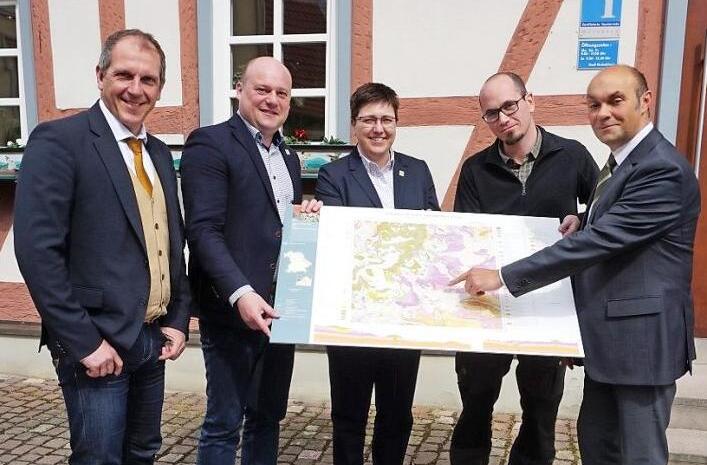 Dr. Volker Friedlein war anderthalb Jahre im Bereich Bischofsheim und Oberelsbach unterwegs. Das war schon 2009 und 2010. In den folgenden Jahren war er auch in Wildflecken, Mellrichstadt und Fladungen tätig. Das Datenblatt Bischofsheim/Oberelsbach sei nun das Erste, das gedruckt wurde. Um all die Daten zusammen zutragen, sei er mit Bohrstock und Hammer in der Hand bis zu zehn Stunden am Tag zu Fuß unterwegs gewesen. Bis zu 40 Kilometer habe er an manchen Tagen zurück gelegt. Natürlich kam auch modernste Technik zum Einsatz, ein Geländecomputer gehört heute selbstverständlich zur Ausrüstung.