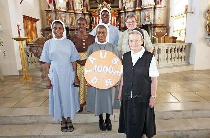 Ein Hauch von Afrika wehte durch die Oberelsbacher Pfarrkirche als die Trommelklänge und Gesänge der afrikanischen Schwestern im Gottesdienst erklangen. Seit vielen Jahren engagiert sich die Pfarreiengemeinschaft "Immanuel Hohe Rhön" Oberelsbach in Tansania, im Dorf Kitere für das Projekt "Shamba". Nun konnten Erlöserschwestern aus Tansania in Oberelsbach begrüßt werden sowie aus Würzburg, Schwester Franzeska Moser. Auch in diesen Jahr war es der Pfarreiengemeinschaft möglich für das Projekt in Afrika einen "runden Tausender" zu übergeben. Christa Schneidmadl vom Arbeitskreis der Pfarreiengemeinschaft, freute sich, dass die Spendenbereitschaft der Oberelsbacher nicht nachlasse. Angelehnt an die biblische Lesung von König Salomo sprach sie vom "hörenden Herz", das sich Gott und den Menschen zuwende und darauf höre, was Gott will und was Menschen brauchen. "Solch ein hörendes Herz besitzen sicherlich viele aus unserer Pfarreiengemeinschaft. Denn wie sonst könnten wir jede Jahr eine stattliche Geldsumme nach Tansania schicken, damit dort im Dorf Kitere ein landwirtschaftlicher Betrieb und eine neue Schwesternstation gebaut werden können."