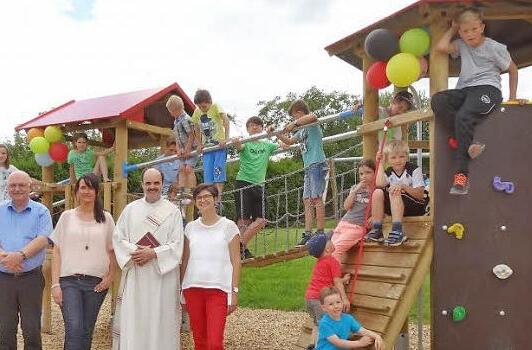Diakon Wolfgang Dömling bezeichnete den Kinderspielplatz als einen Ort, um Gottes wunderbare Schöpfung zu erleben. Besonders fiel ihm bei der Gestaltung der neuen Anlage auf, dass bei jeder Spielstation auch eine Sitzgelegenheit vorhanden ist. "So können die Eltern und Großeltern gemütlich ihre Kinder oder Enkel beaufsichtigen und miteinander ins Gespräch kommen.
