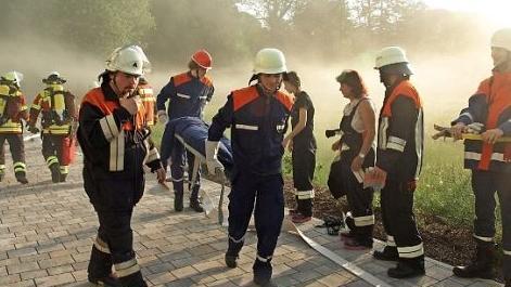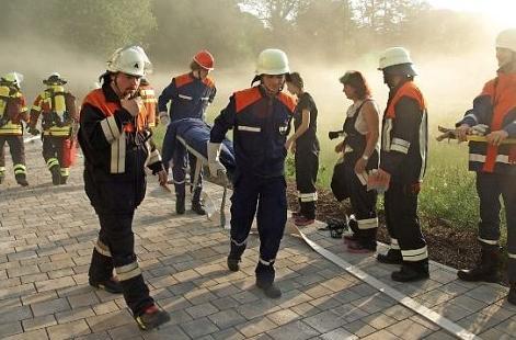 Bei knackigen 28 Grad trainierten an die 50 Feuerwehrmänner und -frauen der Freiwilligen Feuerwehr Bischofsheim sowie der Ortswehren Frankenheim, Oberweißenbrunn und Wegfurt bei einer internen Übung im nurona Pflegezentrum Hammermühle für den Ernstfall. Die Maßnahme wurde in erster Linie organisiert, um zentrale Aspekte wie Orientierung und Ablauforganisation vor Ort sowie den Einsatz von Atemschutzgeräten zu üben. Neben dem korrekten Löschaufbau und einer schnellen Wasserentnahme über die lokalen Hydranten standen Personenrettung und -bergung im Fokus. Für ein realistisches Einsatzszenario sorgte die mitgebrachte Nebelmaschine. Diese erzeugte in dem betroffenen Wohnbereich im ersten Obergeschoss fast eine Nullsicht. In allen Fällen gelang es den Atemschutzgeräteträgern trotz dem dichten Nebel die "Personen" zu finden und zu bergen. "Ziel von internen Maßnahmen wie dieser ist es vor allem auch, dass die Einsatzkräfte im Ernstfall von den Erfahrungen aus der Übung profitieren und ruhiger handeln", erklärt Christian Hoenen, Kommandant und Einsatzleiter der Freiwilligen Feuerwehr Bischofsheim. Die Brandschutztüren sorgen dafür, dass die Flure und das Treppenhaus rauchfrei bleiben.