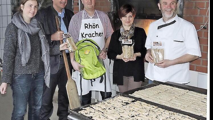 LANDKREIS. 2016 feiert das Unesco-Biosphärenreservat Rhön sein 25-jähriges Bestehen. Zu diesem bemerkenswerten Anlass wurde - neben zahlreichen anderen Aktionen - in allen drei Rhön-Bundesländern ein "Jubiläumsprodukt" benannt. Den Auftakt machte jetzt Hessen. Auf dem Biohof Gensler in Poppenhausen (Wasserkuppe) stellten Verantwortungsträger des Unesco-Biosphärenreservats und der Dachmarke Rhön zusammen mit Bürgermeister Manfred Helfrich und Bio-Bäcker Christof Gensler die "Rhönkracher" vor: knusprige längliche Cracker in unterschiedlichen Geschmacksrichtungen. Der leichte Snack ist bereits seit einigen Jahren auf dem Markt und erfreut sich reger Nachfrage.