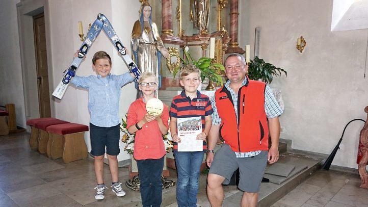 310 Euro haben die drei Langenleitner Kommunionkinder Robin Hauck, Fabian Kapperer, und Bastian Becker für die "SIS-Behinderten-Skifreizeit"der Stiftung "Sicherheit im Skisport" an Martin Raab übergeben. Statt Dankeschön-Geschenke haben sie anlässlich ihrer Kommunion für jedes Geschenk einen Euro für den guten Zweck gegeben. Martin Raab organisiert die Skifreizeit für behinderte junge Menschen im Alter von 10 bis 18 Jahren seit 30 Jahren. Sehbehinderte, Rollstuhlfahrer, geistig und körperliche Behinderte - sie alle können mit Martin Raab und vielen weiteren Helfern erlebnisreiche Tage im Schnee verbringen. Das Geld der Langenleitner Buben wird für eine Hüttentour mit Fackelwanderung verwendet. "Wir werden für die jungen Menschen Getränke und Essen kaufen", versicherte Raab den drei und dankte ihnen und ihren Eltern für die großzügige Spende. "Von Kindern für Kinder, die nicht auf der Sonnenseite des Lebens stehen." Foto: Marion Eckert