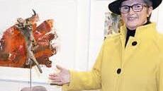 Zum Hinschauen reizt auch die Collage mit einem überfahren Frosch, Totholz und getrocknetem Klatschmohn. "Auf und davon", hat sie dieses Werk genannt. "Der Frosch scheint ein zweites Leben zu haben und zu springen, obwohl er tot ist", sagte Michael Dohrmann Seit 1975 befasst sich Ingrid Benkert mit Malerei. Verschiedene Kurse in der Volkshochschule Bad Neustadt und Bad Kissingen habe sie besucht, um sich stetig fortzubilden und neue Anregungen zu holen.