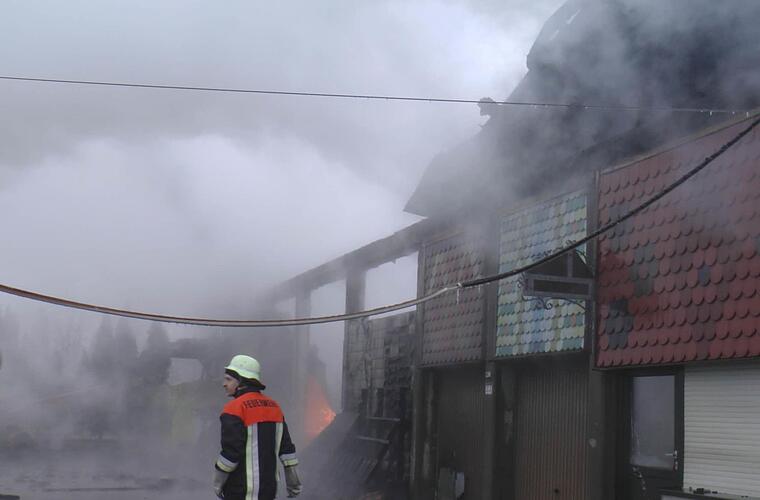 In einem Industriegebiet ist am Freitagmorgen eine Lagerhalle samt darin abgestellter Fahrzeuge in Brand geraten.