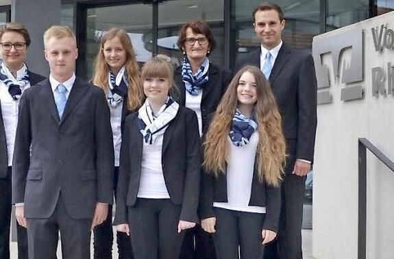 Insgesamt vier Auszubildende begrüßten Michael Reif, Mitglied des Vorstandes der Volksbank Raiffeisenbank Rhön-Grabfeld, Personalleiterin Nicole Förster und...