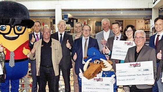 Opti-Wohnwelt unterstützt als in der Heimat verwurzeltes Familienunternehmen soziale Projekte in der Region Main-Rhön. Im Dezember ging ein Prozent des Umsatzes in den Niederlassungen Schweinfurt und Niederlauer in den großen Spendentopf. Kunden konnten online entscheiden, wem die "Opti-Taler" zu Gute kommen. Jetzt überreichten die Schirmherren die Schecks an die ersten fünf ausgewählten Projekte. Zur Auswahl stehen 20 Projekte aus der Region Main-Rhön - von Musikinstrumenten für demenzkranke Senioren in Bad Neustadt über Spielzeug für geflüchtete Kinder in Haßfurt bis zur Sanierung des großen Planschbeckens im Wildpark Schweinfurt. "Wir haben bewusst das umsatzstarke Weihnachtsgeschäft für die Spendenaktion gewählt und freuen uns über den Erfolg unserer Aktion", äußern sich die Geschäftsführer von Opti-Wohnwelt Michael und Oliver Föst. Opti-Wohnwelt hatte zu einer Feierstunde in seine Niederlassung nach Schweinfurt eingeladen. Die ersten fünf Projekte, deren Wunschbudget bereits am weitesten gesammelt wurde, erhielten die Schecks, welche die Geschäftsleitung der Opti-Wohnwelt nochmals großzügig aufgerundet hatte. Die Aktion läuft noch bis Sommer 2017. Bereits an die Kunden ausgegebene Spendencodes können jederzeit eingelöst werden, damit noch möglichst viele der engagierten Projekte mit einem Scheck bedacht werden können. Informationen zu den ausgewählten Projekten sind unter www.opti-wohnwelt.de zu finden. Auf dem Foto: Die Schirmherren Sebastian Remelé, Oberbürgermeister von Schweinfurt, Richard Knaier, Bürgermeister Niederlauer, und der Schweinfurter Landrat Florian Töpper überreichten großzügige Spendenschecks von Opti-Wohnwelt. Die Initiatoren Michael und Oliver Föst sind vom Erfolg ihrer Aktion hoch erfreut. Foto: Flavio Burul