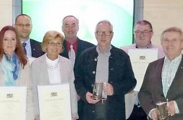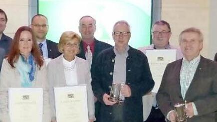Landrat Thomas Habermann, der Betriebsratsvorsitzende Wolfgang Stumpf und der Geschäftsführer Helmut Grosser dankten den Jubilaren und Ruheständlern für die langjährige Betriebstreue und den pflichtbewussten und immer zuverlässigen Einsatz für "ihr" Überlandwerk.