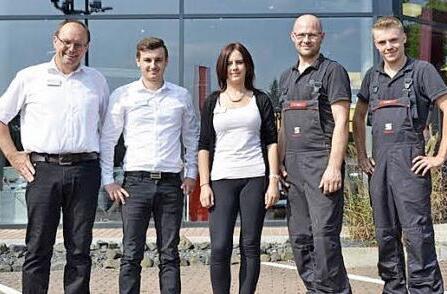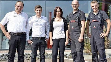 Gleich vier neue Mitarbeiter begrüßt Inhaber Rudolf Streit (von links) in seinem Ostheimer Autohaus. Artur Loresch und Sarah Walch (nicht im Bild) verstärke...
