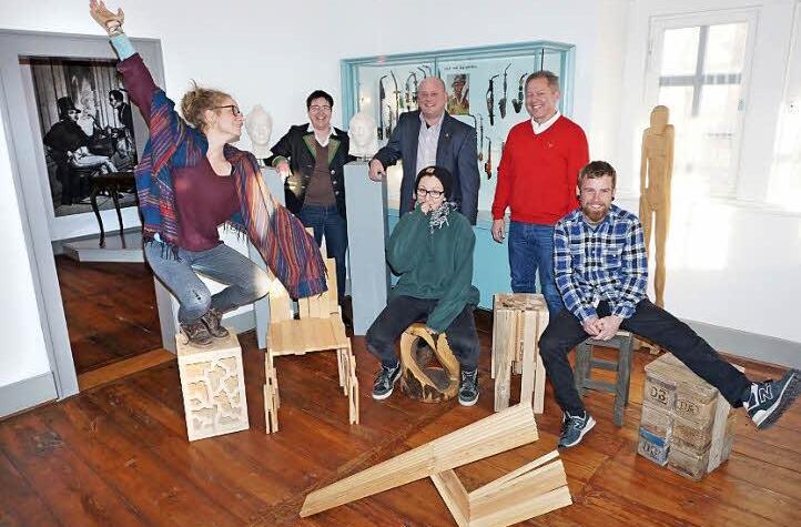 Gezeigt werden aktuelle Arbeiten, die im Laufe des Jahres in verschiedenen Projektmodulen erstellt wurden. Ob Holz, Stein, Metall, Keramik oder Druckgrafik, die Ausbildung an der Schule sei so breit wie möglich aufgestellt, um den Schülern die Möglichkeit zu geben, ihr Material und ihre individuelle Art des Arbeitens zu finden, erklärte Bühner. In der aktuellen Ausstellung in Oberelsbach seien neben einzelnen Skulpturen verschiedene Sitzgelegenheiten zu finden, die als Projekt erstellt wurden. Ganz unterschiedliche Stühle und Hocker entstanden, in völlig verschiedenartigem Design.