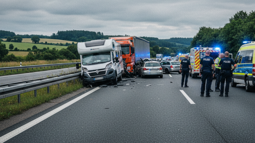 Der 46 Jahre alte Fahrer des Wohnmobils, seine 35-jährige Beifahrerin sowie ein sechsjähriges Kind erlitten schwere, jedoch nicht lebensgefährliche Verletzungen. Zwei weitere Kinder im Alter von acht und 14 Jahren sowie der 50-jährige Lkw-Fahrer wurden leicht verletzt.