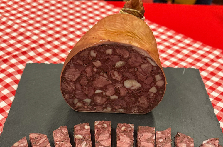 Der fränkische Presssack ist eine regionale Wurstspezialität aus Schweinefleisch, Schwarten, Speck und Gewürzen. Die rote Variante erhält ihre Farbe und den kräftigen Geschmack durch die Zugabe von Blut. Je nach Metzger und Rezeptur variiert die Gewürzmischung und macht den Presssack zum Botschafter fränkischer Esskultur.