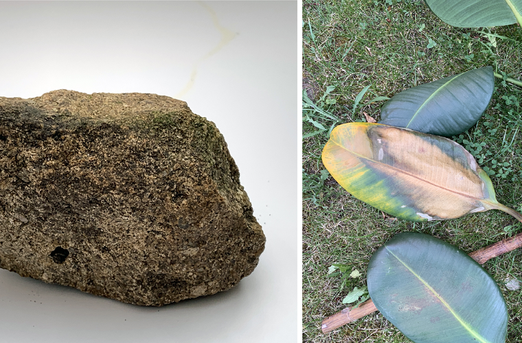 Neben der Fundstelle des vermeintlichen Meteoriten seien außerdem mehrere Blätter versengt gewesen: "Meine Frau hatte dort einen Gummibaum stehen. Davon waren mehrere Blätter angebrannt. Die muss der Stein - wenn er denn wirklich von oben kam - versengt haben", berichtet Mühlöder. Zunächst sei ein grauer Staubmantel um den Stein herum gewesen, mittlerweile habe sich seine Farbe verändert.