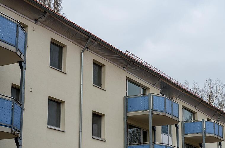 Die sogenannte Vergrämung dieser Wohnblocks ist bereits erledigt: Unter den Dachvorsprüngen sind Plastikplanen gespannt worden, damit Mehlschwalben und Fledermäuse sich nicht einnisten können. Ab 31. Oktober, also am Ende der Brutzeit, werden dann die verbleibenden 21 Blockhäuser auf diese Weise eingehaust und Zug um Zug bis März/April 2018 abgerissen.