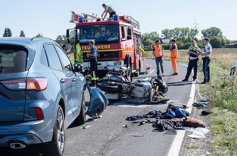 Auf der Staatstraße 2271 zwischen Unterspiesheim und Schwebheim (Lkr. Schweinfurt) ereignete sich ein schwerer Verkehrsunfall zwischen einem Motorrad und einem Auto.