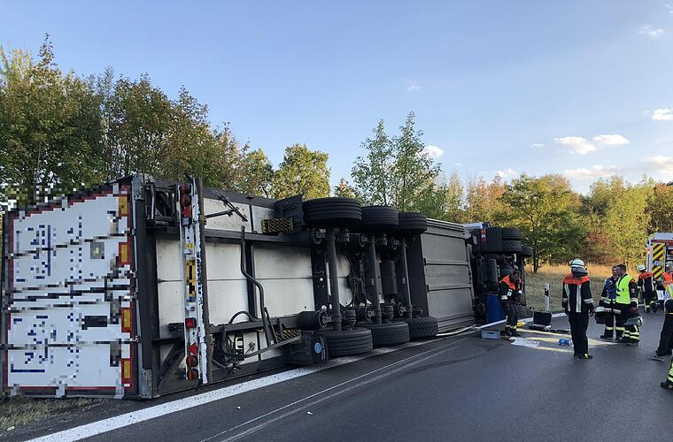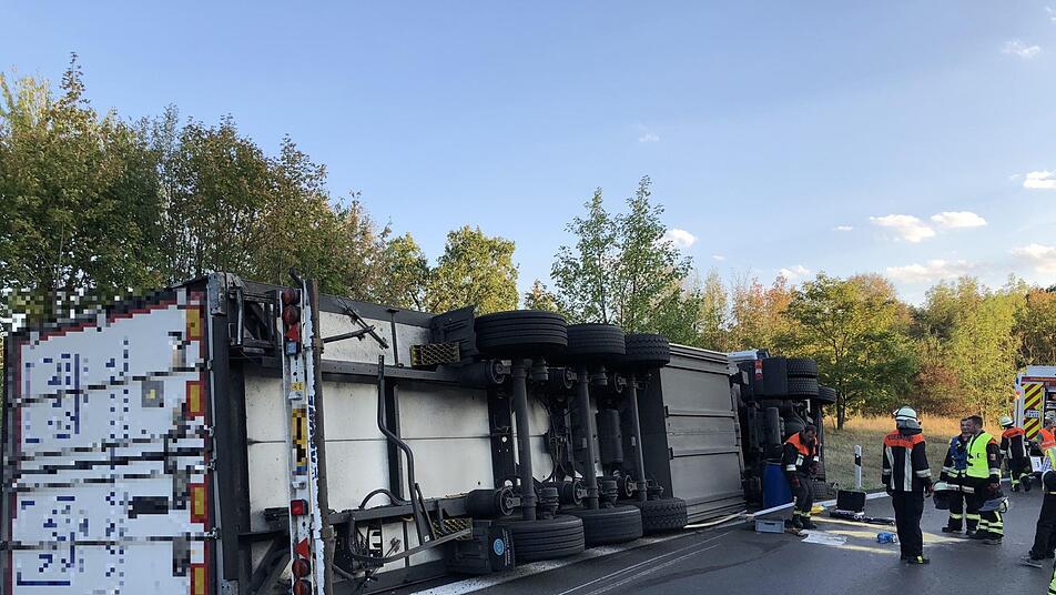 Am Autobahndreieck Schweinfurt-Werneck ist am Mittwochnachmittag ein mit Frischfleisch beladener Sattelzug umgekippt. Die beiden Insassen wurden leicht verletzt. Die Bergungsarbeiten dauern bis in die Donnerstagmorgenstunden an.