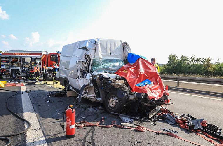 Gegen 16.30 Uhr hat sich der Verkehrsunfall in Fahrtrichtung Kassel ereignet. Nach den ersten Erkenntnissen zum Unfallhergang hat der Fahrer eines Kleintransporters kurz nach dem Autobahnkreuz Schweinfurt-Werneck das Stauende übersehen. Der Peugeot prallte daraufhin mit hoher Geschwindigkeit gegen das Heck eines polnischen Sattelzugs, der auf der rechten Fahrspur stand.