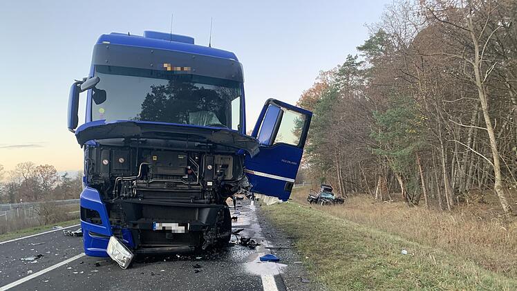 Die 54 Jahre alte Frau aus dem Landkreis Schweinfurt wurde in ihrem Auto eingeklemmt und musste von der Feuerwehr mit lebensbedrohlichen Verletzungen aus ihrem Fahrzeug gerettet werden. Der Rettungsdienst brachte die Verletzte in eine Klinik, wo sie trotz der Reanimationsmaßnahmen und aller Bemühungen der Mediziner verstarb. Der 26-jährige Fahrer des Lkws und die andere Autofahrerin erlitten beide einen Schock und weitere leichte Verletzungen. Die beiden wurden zur Behandlung in Kliniken gefahren.