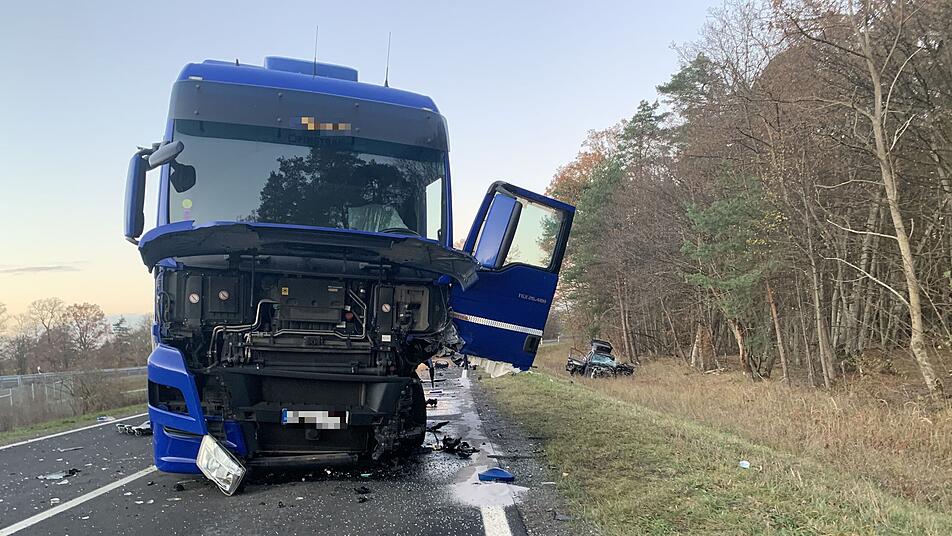 Im Landkreis Schweinfurt hat es einen tödlichen Unfall gegeben. Eine Autofahrerin ist, aus bisher ungeklärten Gründen, in den Gegenverkehr gekommen und mit einem Lkw kollidiert.