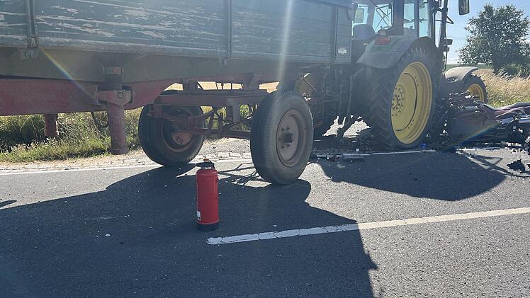 Zu einem tödlichen Zusammenstoß ist es am Dienstagnachmittag, dem 18. Juli 2023, zwischen einem Traktor und Motorrad gekommen. Der 64-Jährige Zweiradfahrer verstarb noch an der Unfallstelle. Auf Anordnung der Staatsanwaltschaft zog die Polizei Schweinfurt einen Unfallsachverständigen hinzu. Dies berichtete das Polizeipräsidium Unterfranken in einer Pressemeldung.