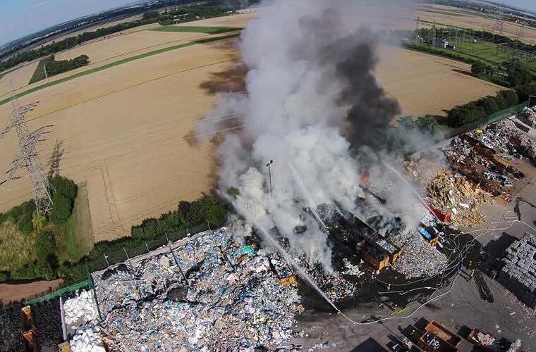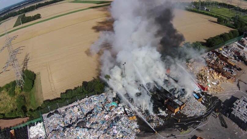 In Bergrheinfeld (Kreis Schweinfurt) stand am Donnerstagabend ein hoher Müllberg in einer Abfallsortieranlage in Flammen. Die Einsatzkräfte waren bis tief in die Nacht im Einsatz.