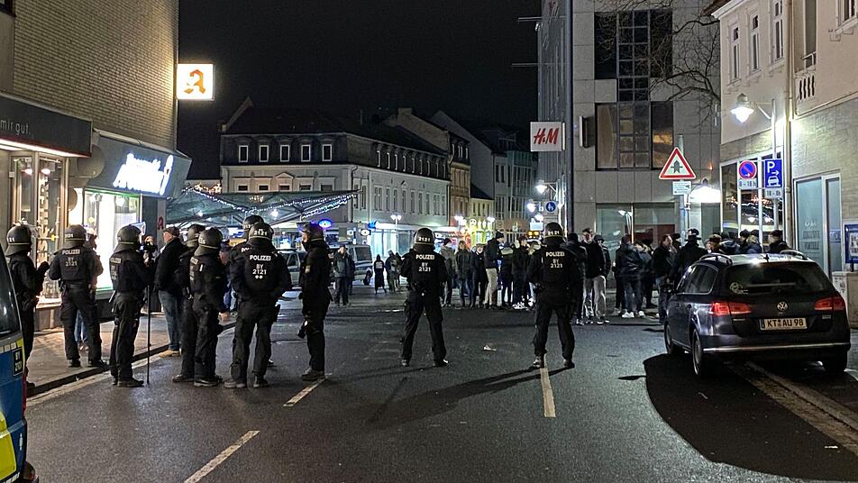 Beamten seien durch Versammlungsteilnehmer "beleidigt und bespuckt" worden, hieß es von der Polizei in der Nacht zum Montag. Die Polizei bat die Teilnehmer, "sich deutlich von Krawallmachern und Straftätern abzugrenzen". Die Versammlung sei nicht angemeldet worden, die Polizeiinspektion Schweinfurt war mit zahlreichen Unterstützungskräften im Einsatz.
