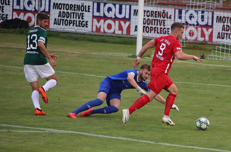 Klar, danach hatte Adam Jabiri bei einem Pfostenschuss Pech (16.), Tim Danhof scheiterte völlig frei an Keeper Kevin Maschke (21.) und hatte Stefan Maderer beim Drei-gegen-Eins die falsche Idee (24.). Dann war's endgültig dahin mit Schweinfurter Aktionismus. Von solch Nachlässigkeit zu frecheren Aktionen geradezu ermuntert, nutzte Rain prompt seine nächste zum 2:0. Bei einem Eckball verschoben die Schweinfurter alle nach rechts, ein öffnender Pass, wieder war Käser frei und überlupfte Zwick (39.). Der wiederum verhinderte mit seinem beherzten Herauslaufen gerade noch das dritte Tor: Diesmal wäre Blerand Kurtishaj durch gewesen (43.).