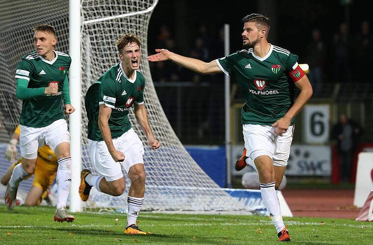 Denn nur solange der FC 05 den Kontakt zum Aufsteiger bei maximal diesen drei Miesen halten kann, so lange darf er dem vorletzten Spieltag am 16. Mai 2020 entgegenfiebern, auf dass im Rückspiel die Meisterschaftsentscheidung fallen möge. Türkgücü präsentierte sich am Montagabend unter Flutlicht als reifer, Schweinfurt nach der Pause als leidenschaftlicher. "Arbeiter-Fußball" nannte es FC-05-Kapitän uns 1:1-Schütze Stefan Kleineheismann. "Wir haben uns reingehauen mit dem Mut der Verzweiflung. Das war harte, ehrliche Arbeit." Fußballerisch war es bis zur Pause eher eine Fortsetzung der seltsamen Schweinfurter Oktober-Auftritte. Türkgücü war spritziger, gewitzter, bärenstark über seine Außen Dominik Weiß (links) und Kasim Rabihic (rechts), spielte sich etliche gute Chancen und verwandelte eine durch Benedikt Kirsch (42.). "Wir haben ein sehr gutes, ein packendes Spiel für diese Platzverhältnisse gesehen, mit einem am Ende gerechten Ergebnis", formulierte es Türkgücü-Coach Reiner Maurer freundlich für die Gastgeber. Denn wer weiß, ob sich die angesichts des ramponierten Selbstvertrauens nach einem durchaus möglichen 0:2 noch einmal hätten aufraffen können.
