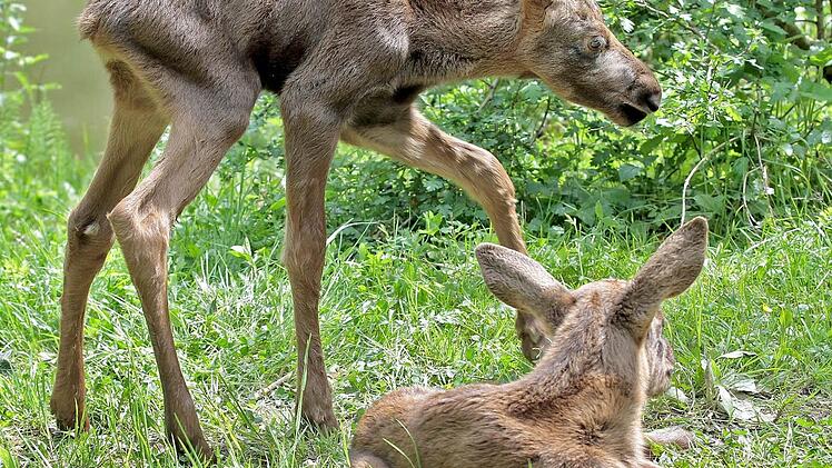 13 Jahre lang haben die Schweinfurter gewartet. Zum 50. Geburtstag des Wildparks hat es nun endlich mit dem Elch-Nachwuchs geklappt. Sogar doppelt.