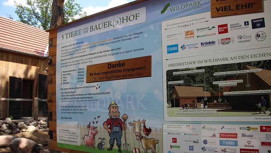 Für die ebenso ansehnliche wie artgerechte Tieranlage - inklusive Whirlpool für die lustigen Schwäbisch-Hällischen Schweine - sind durch Spenden und Sponsoring rund 600 000