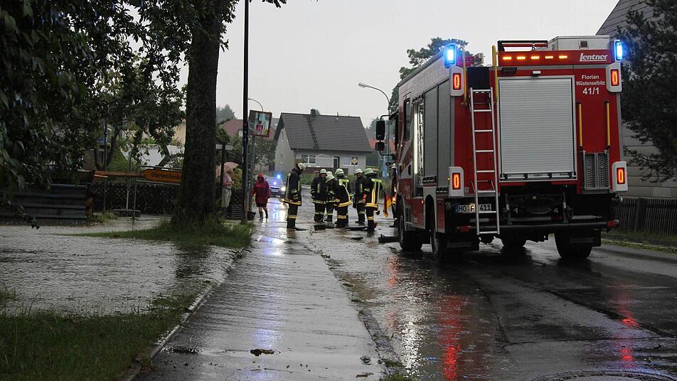 Zu zahlreichen Einsätzen mussten die Einsatzkräfte der Feuerwehr aufgrund des Starkregens am Sonntagnachmittag in Hochfranken ausrücken. In Unterweißenbach bei Helmbrechts war der Ortskern komplett unterspült.