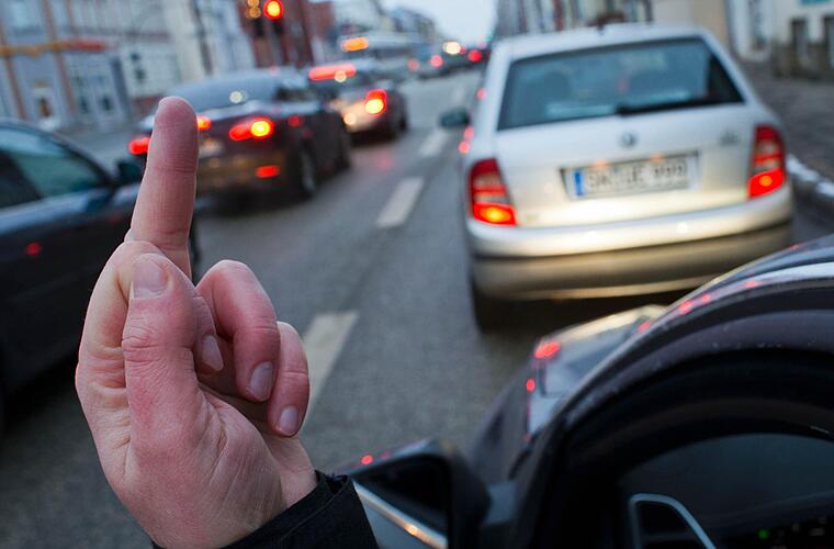 Weil sein Hintermann allzu aufdringlich ist, zeigt ein 23-jähriger Autofahrer bei Randersacker (Landkreis Würzburg) den Mittelfinger. Der Kontrahent lässt das aber nicht auf sich sitzen - und löst einen Auffahrunfall aus.