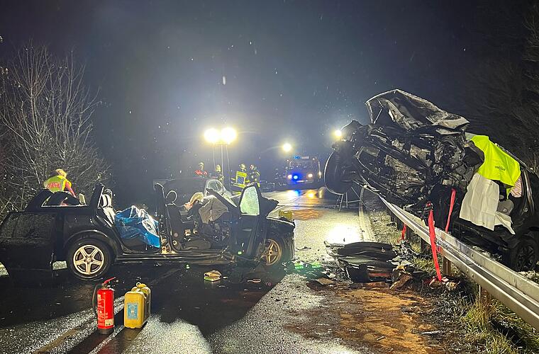 Frontalzusammenstoß im Kreis Würzburg: Alle fünf Unfallbeteiligte wurden in den Fahrzeugen eingeklemmt
