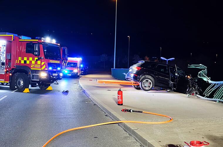 Schwerer Verkehrsunfall in Würzburg: Am späten Mittwochabend (5. April) hat ein Auto ein Brückengeländer in der Nürnberger Straße durchbrochen - und wäre beinahe auf die darunterliegende B8 gestürzt.